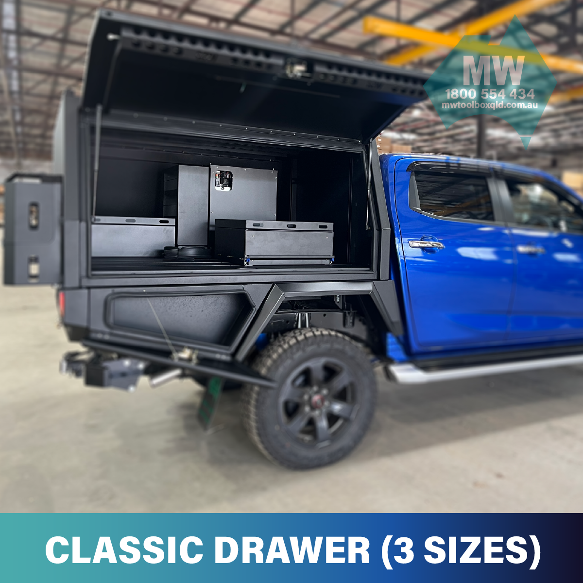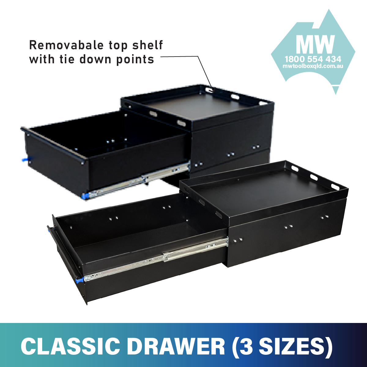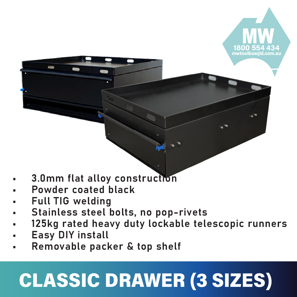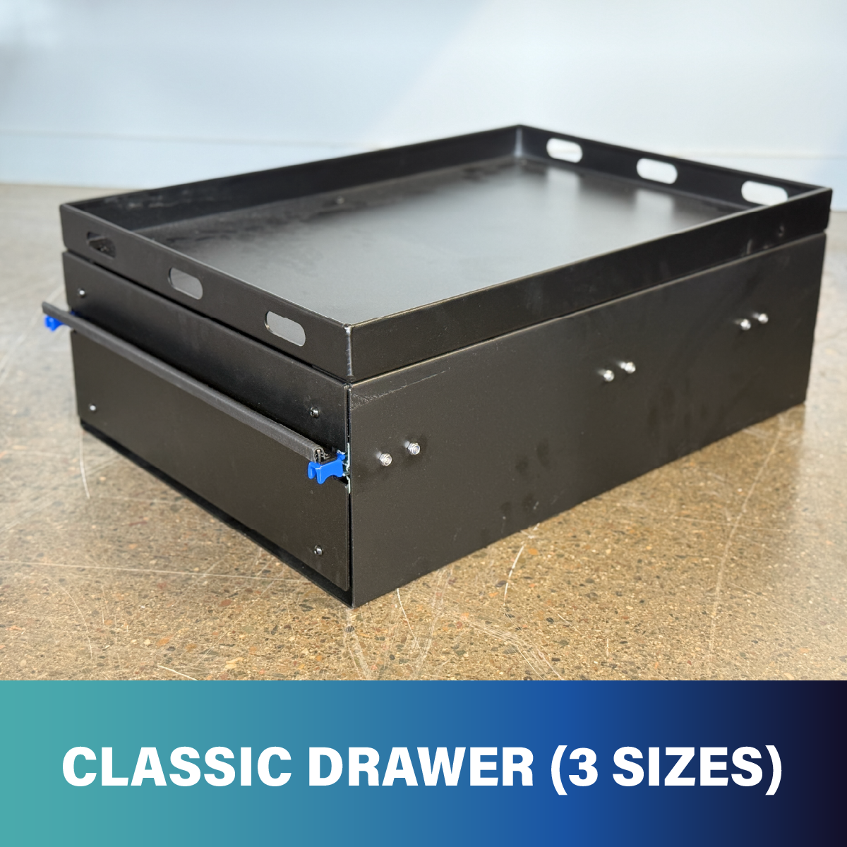 This Classic Drawer is perfect for camping essentials or worksite tools, this drawer system is built tough with a 3.0mm flat alloy body.