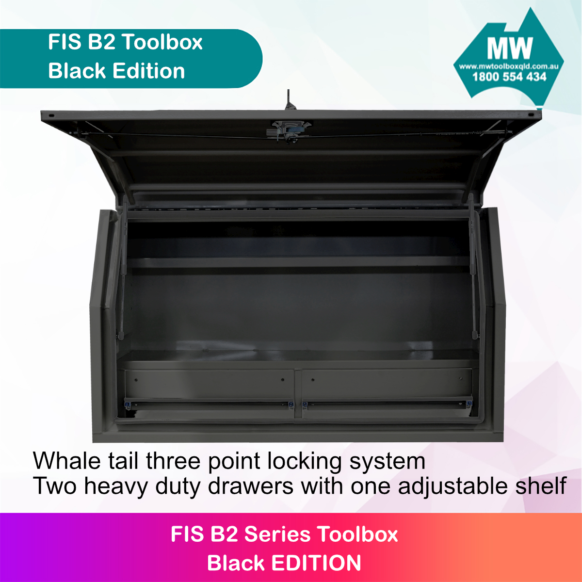 - MW Own Manufactured Heavy Duty Whale Tail Lock – Three point locking system Specific for Toolbox Applications.