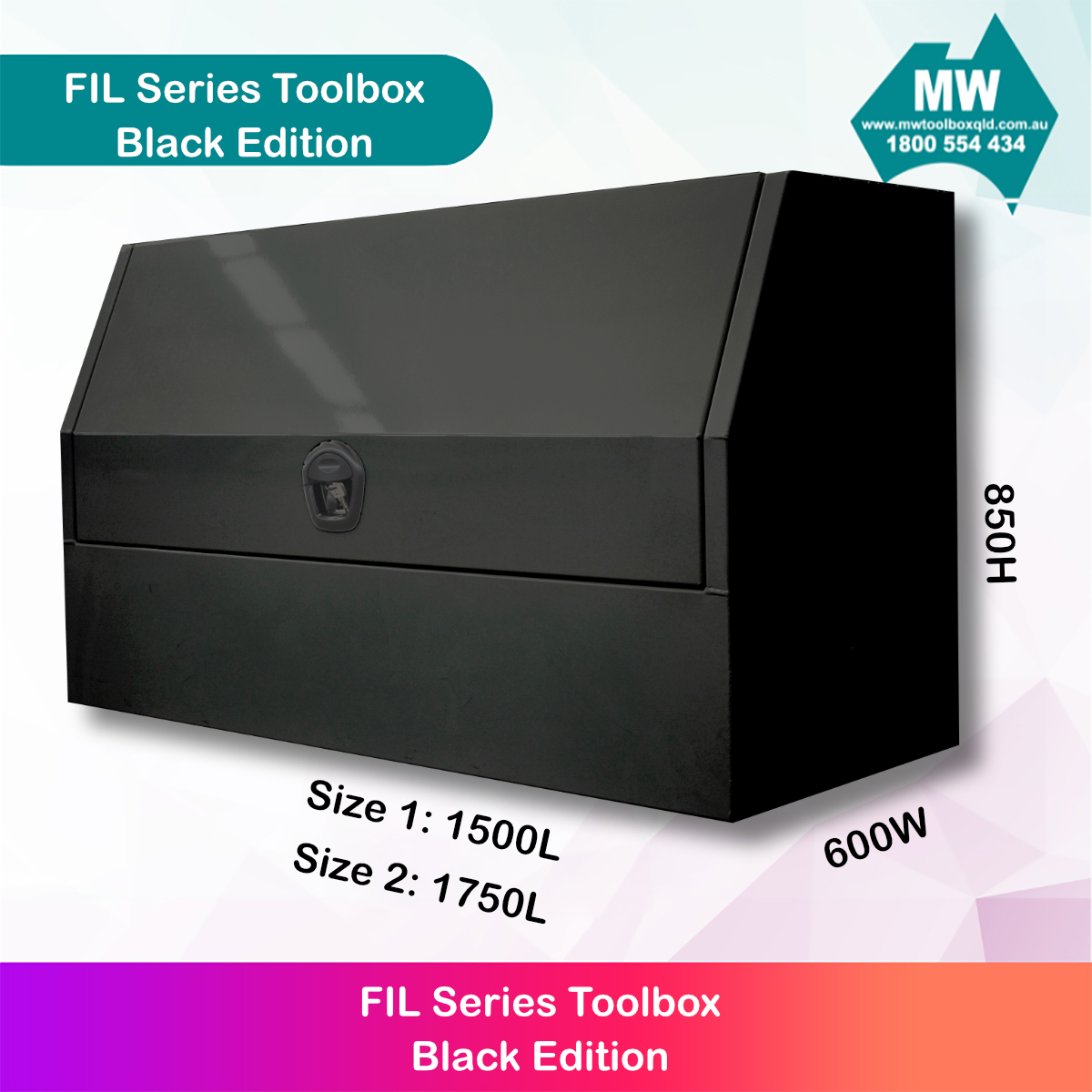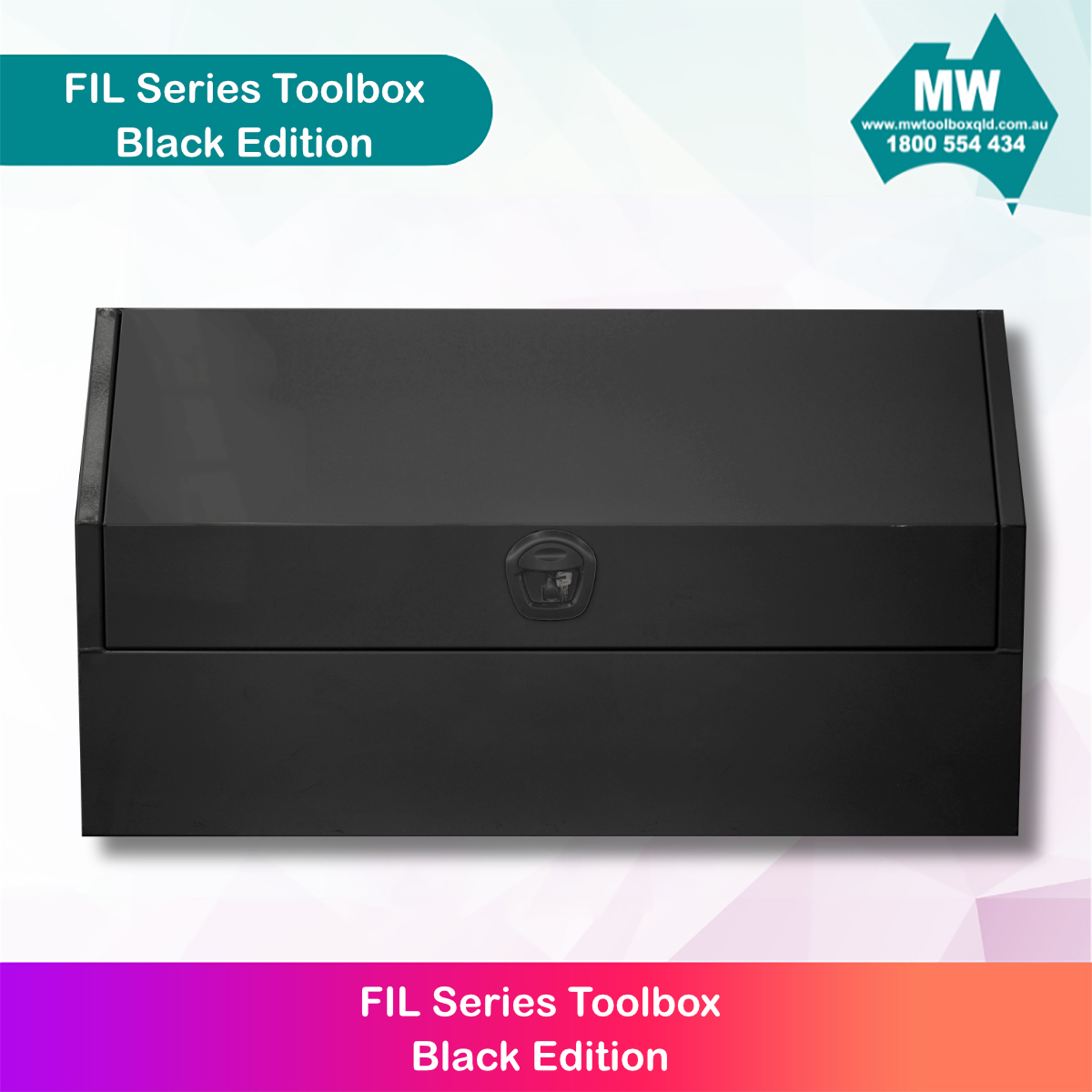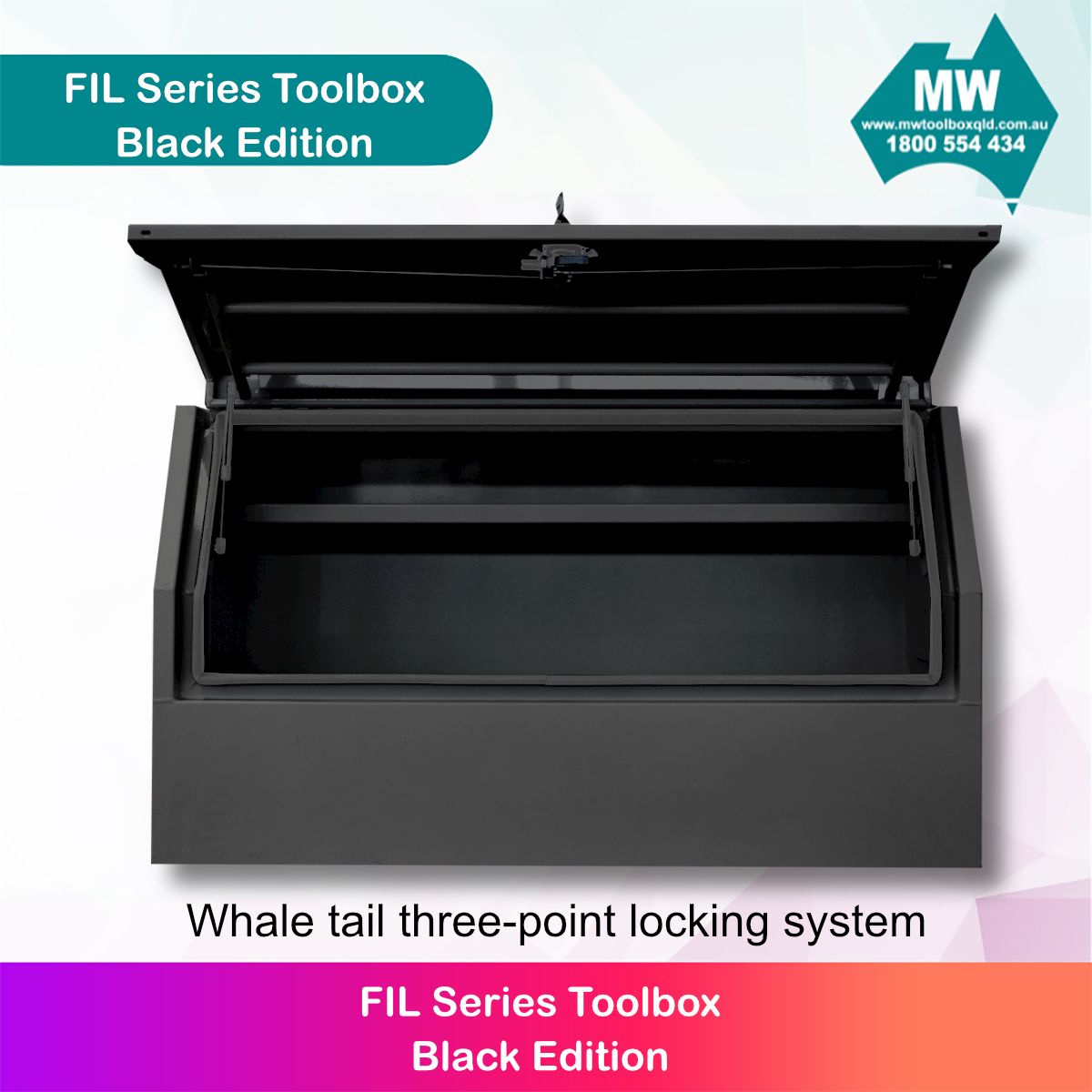 Durable half front opening toolbox black edition, available from MW Toolbox Queensland.