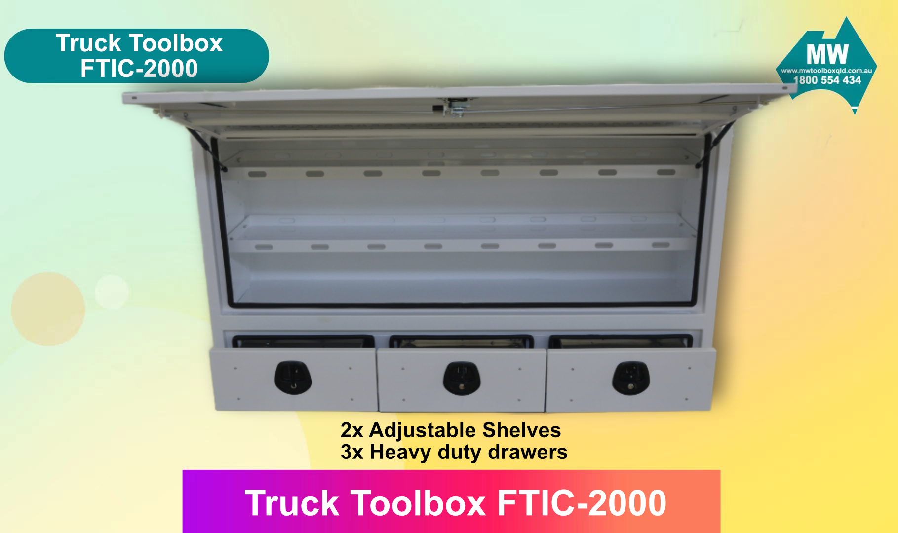 - Heavy duty drawers, adjustable shelves.