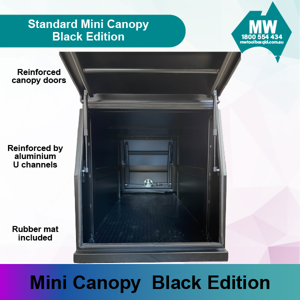 Durable 800mm aluminium ute canopy in black edition, available now at MW Toolbox Queensland for premium storage solutions.