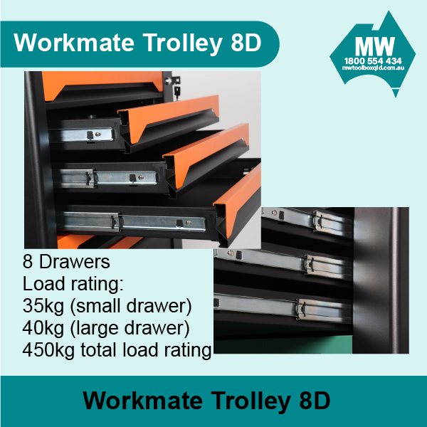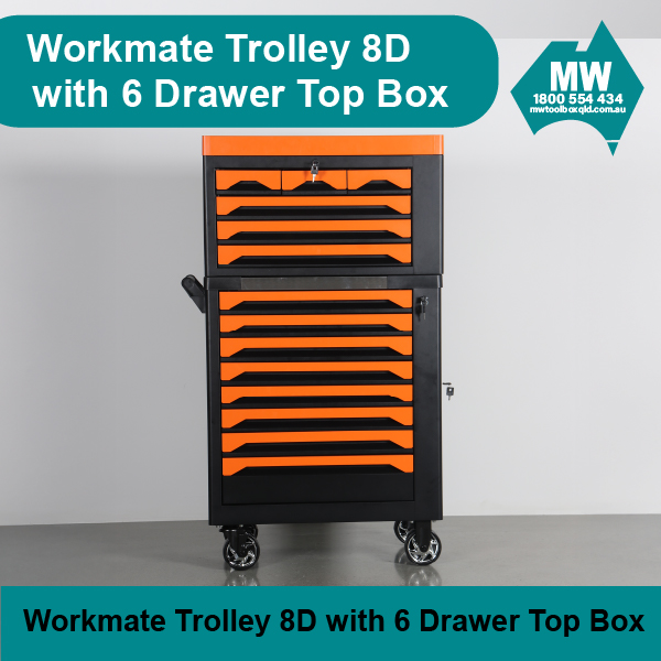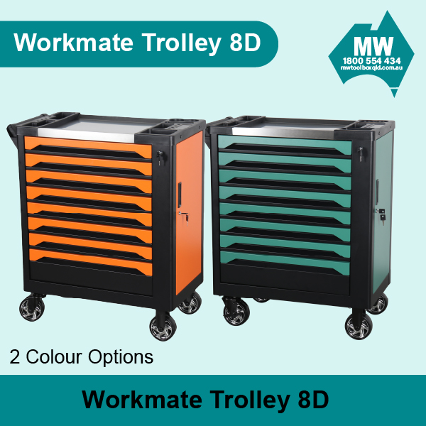 Available in striking orange or dark green finishes, the MW Tool Trolley also offers two optional top box configurations to expand your storage capacity. Perfect for automotive professionals, home garages, workshops, and commercial settings, this is a tool trolley that’s made to perform and built to last.