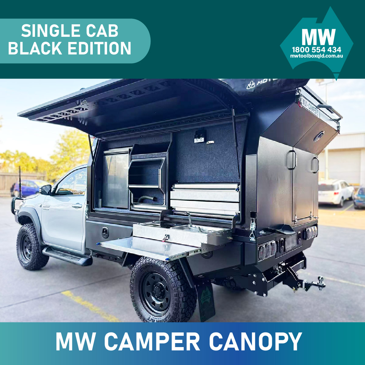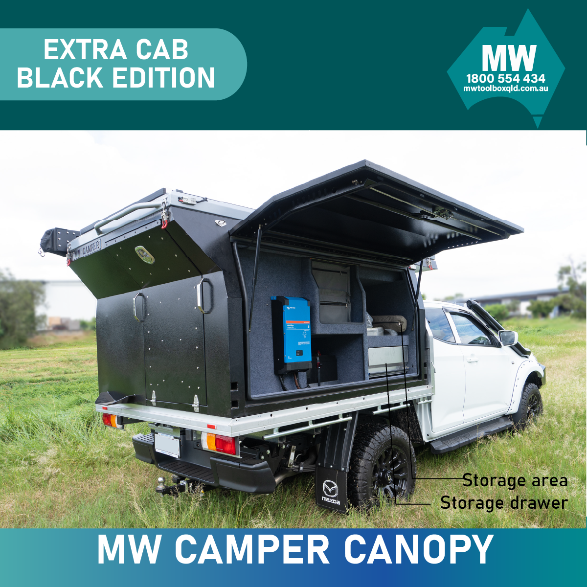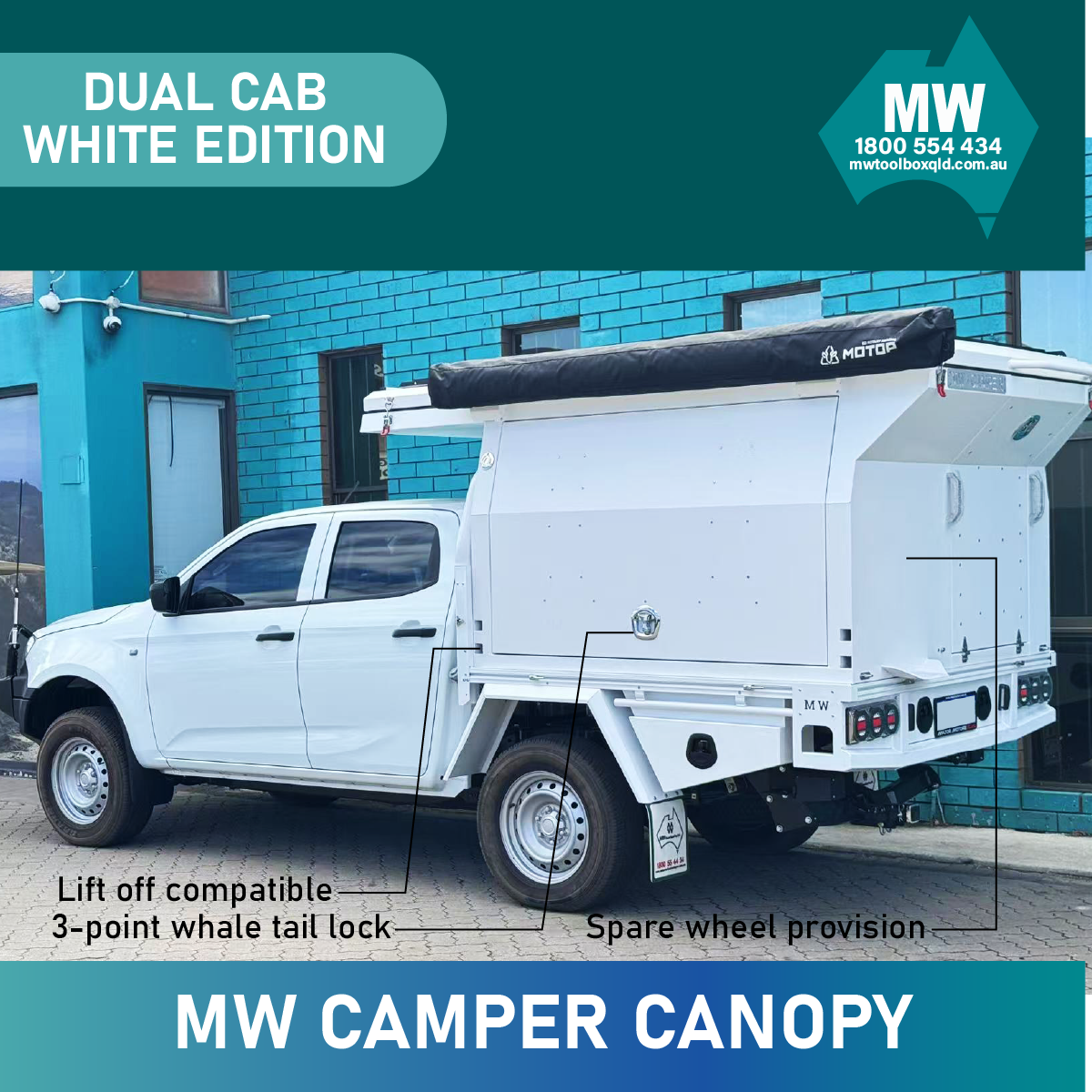 MW Camper Canopy is a compact unit dedicated to outback adventures. It’s well thought out with everything you need. This jack-off slide on unit gives you a towing free camping experience. Electrical actuated popup roof provides effortless set up to the most comfortable & spacious sleeping space. Built in kitchen section with space for upright fridge and cooktop unit. Full on-board DC electrical system comes ready to go standard. MW Camper Canopy is compatible with almost all ute models (dual cab, extra cab & single cab).